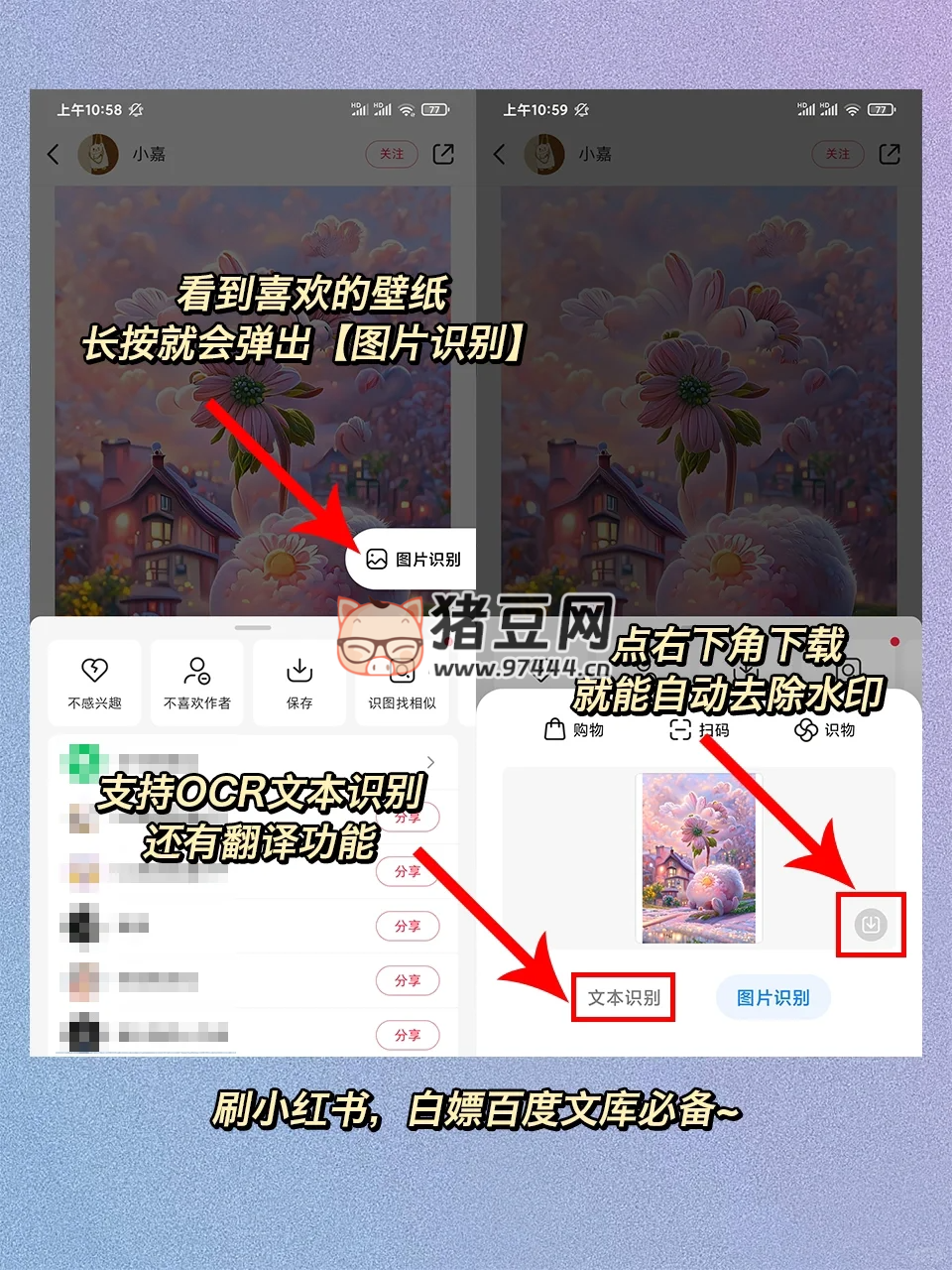 ②传送门:自动去 水印 保存图片,文字识别(刷 小红书 ,白 p 百度文库必备)