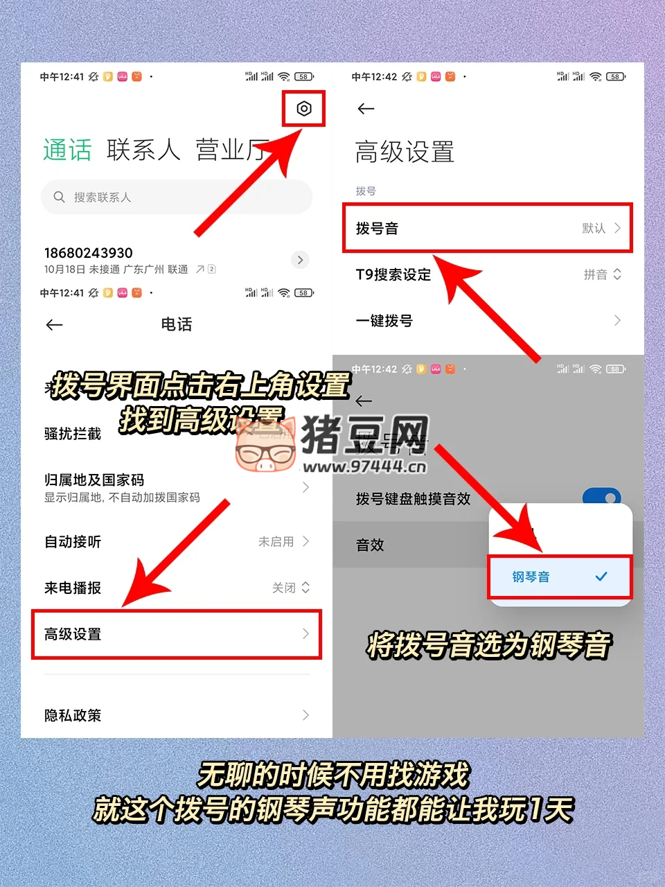 ⑤钢琴声拨号:拨号键更换成钢琴声,无聊时可以玩一整天!趣味性满满!