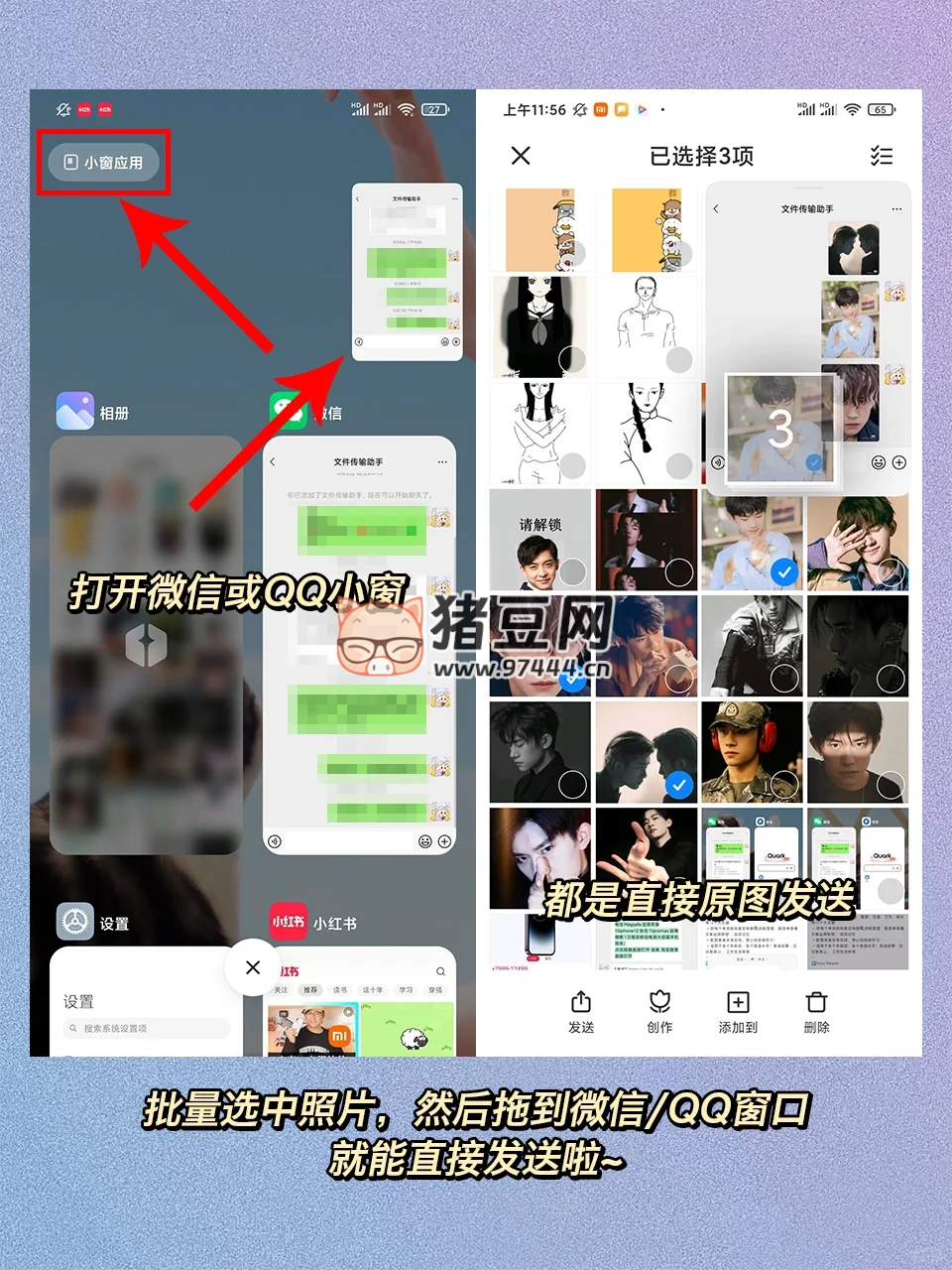 ①小窗功能:鹅厂聊天 软件 都能用,可批量拖动图片 / 文字
