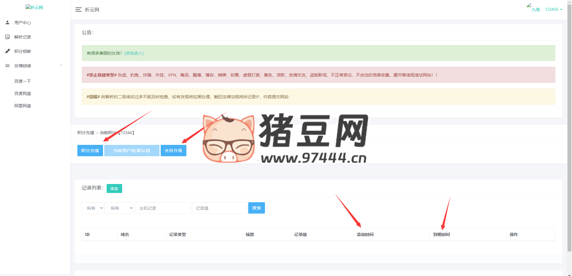 设置金币价格例如 备案域名 b ai du.com 解析一条 10 金币一个月,到期自动删除解析
