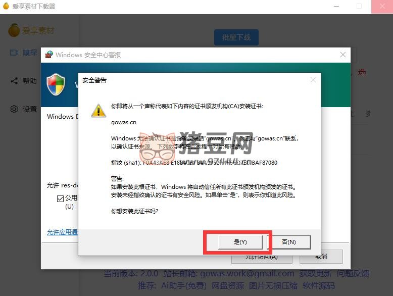 安装完成打开的时候会弹出安装证书提示,我们选择“是”。